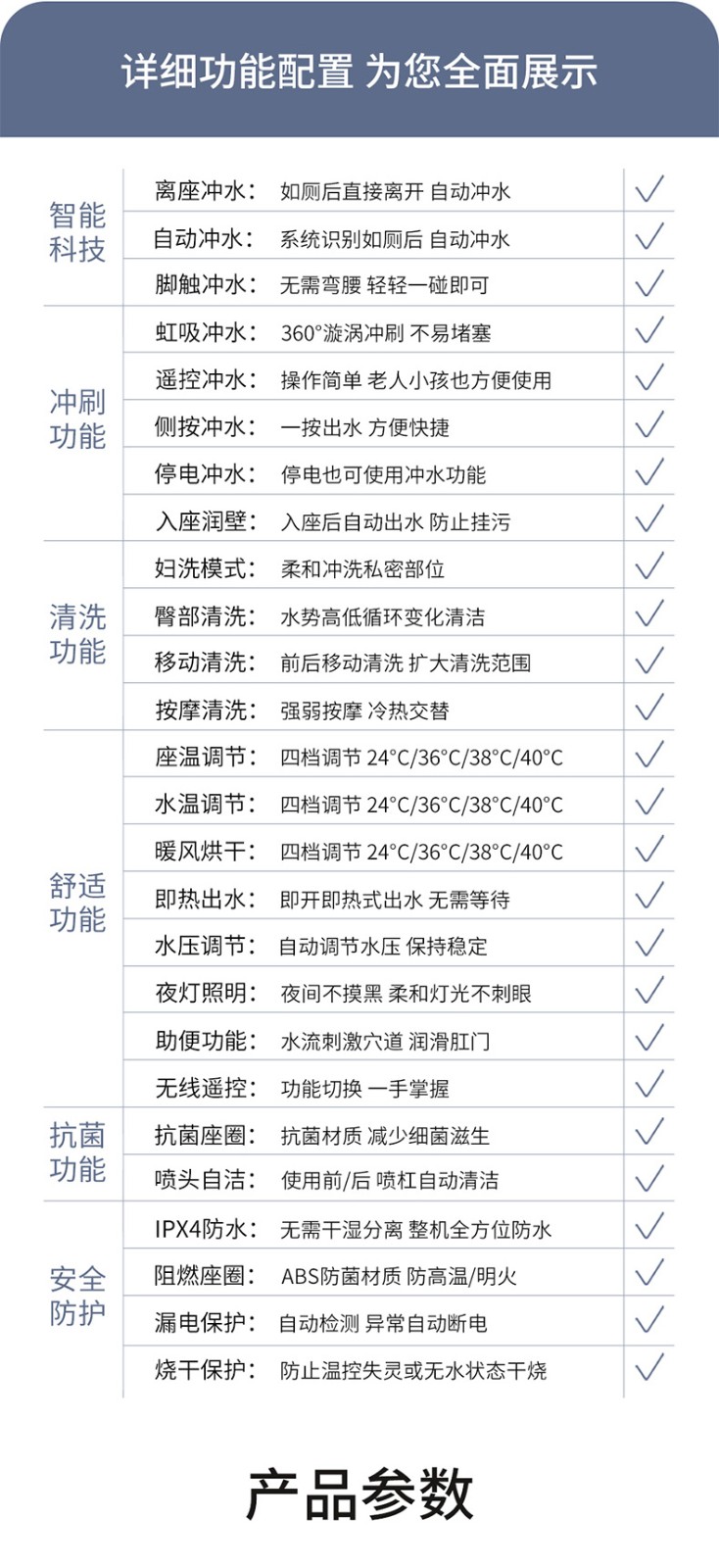 產(chǎn)品功能:1、臀    洗、婦    洗、移動清洗、